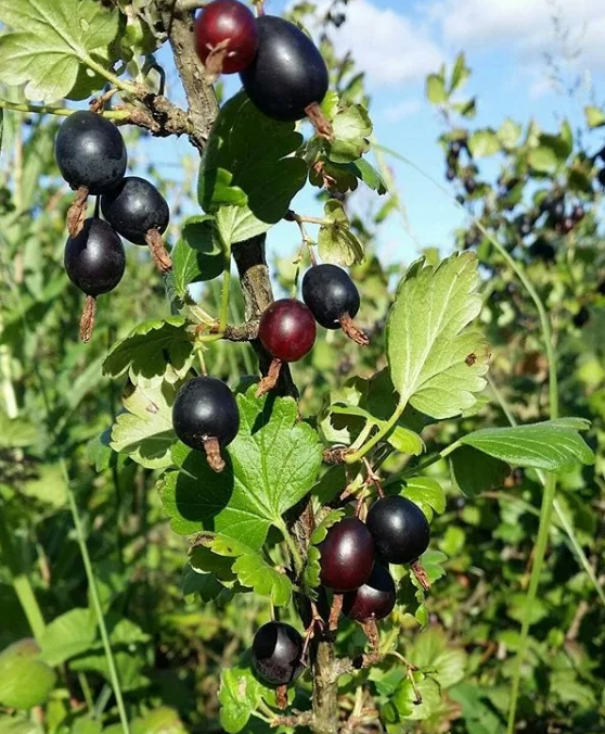 Starší ruská odrůda s téměř černými plody a pravou angreštovou chutí.