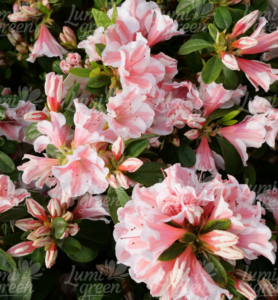 Charakteristika: Azalka japonská ´STARBURST´ je nová dvoubarevná odrůda, která kvete dvakrát do roka. Květy jsou zdobeny korálově růžovou hvězdou a výrazným bílým okrajem. Rozkvétají na jaře a opakovaně v menším množství v podzimních měsících. Neopadavé listy jsou lesklé, zelené barvy, na zimu nabývají fialovo-bronzové odstíny. Tento kultivar je hustě rozvětvený se zaobleným tvarem a vzpřímeným růstem. Dorůstá výšky přibližně 60-90 cm. Vynikne v kombinaci s jinými azalkami nebo jako nepřehlédnutelný solitér.