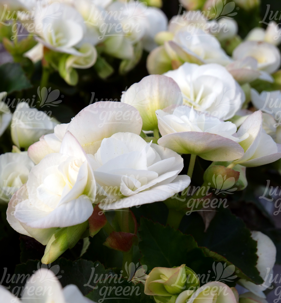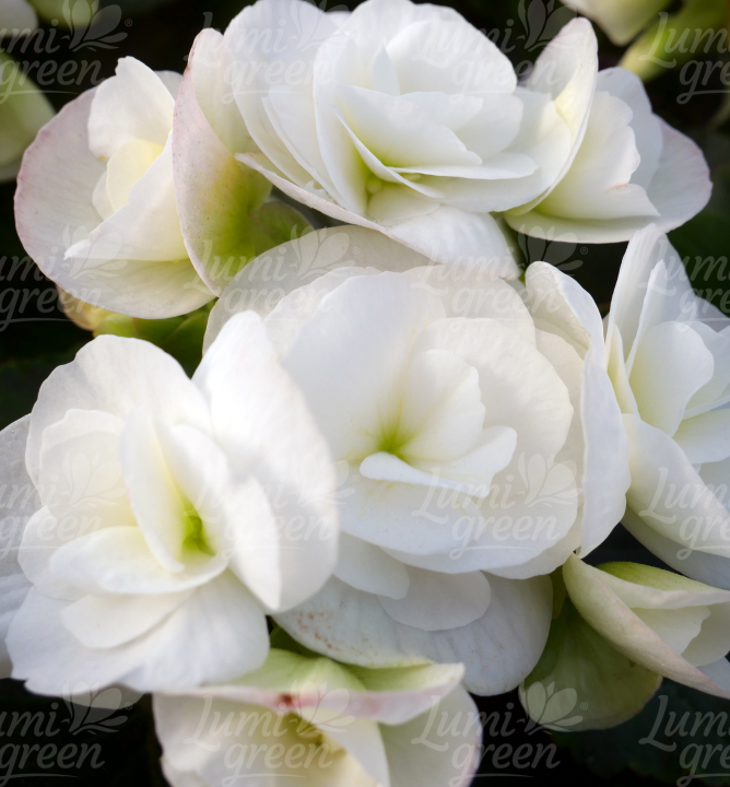 Překrásná vzpřímená begonie s plnými bílými květy.