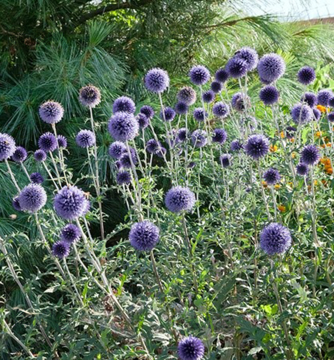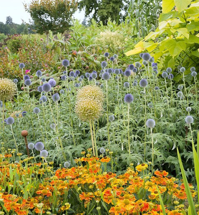 Spolehlivě kvetoucí ježibaba s nepřehlédnutelnými modrými kulovitými květy.