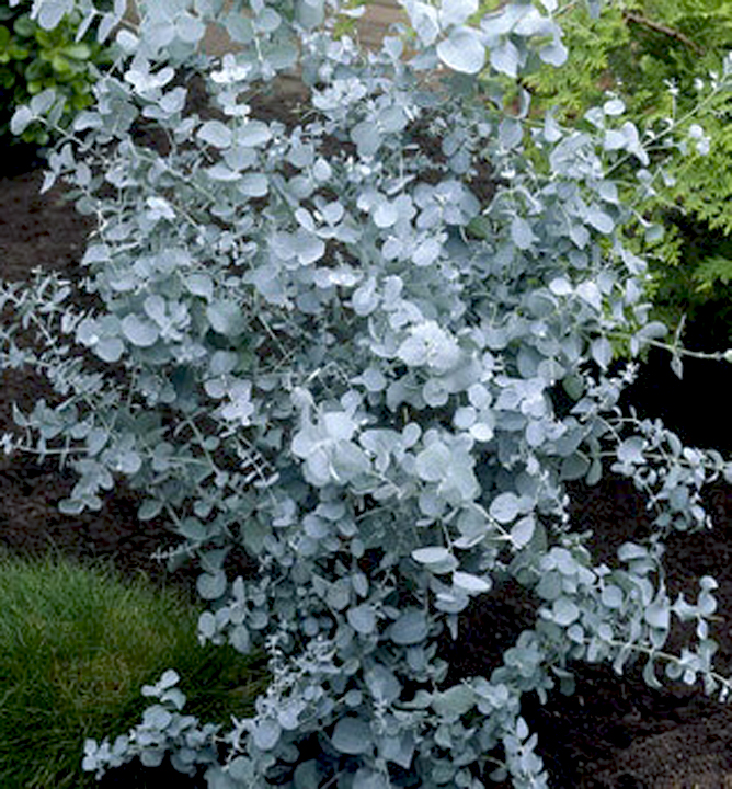 Exotický léčivý keř až strom s aromatickými modrě šedými listy.
