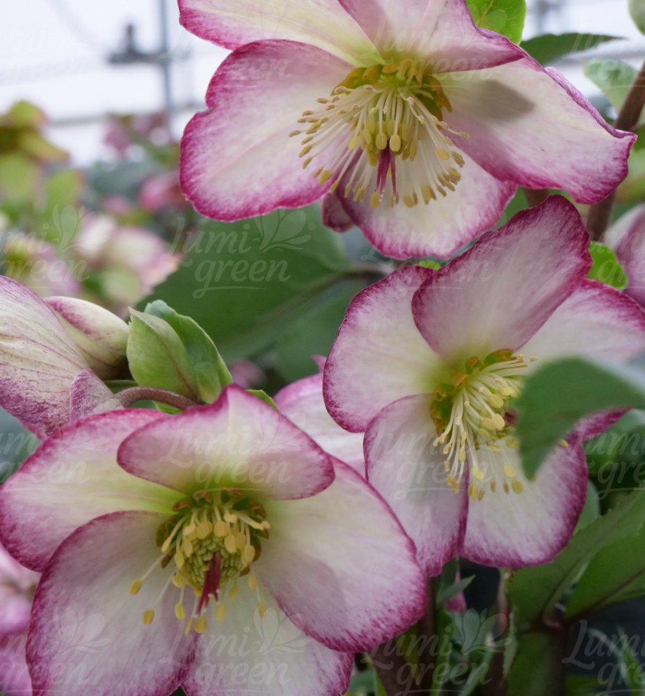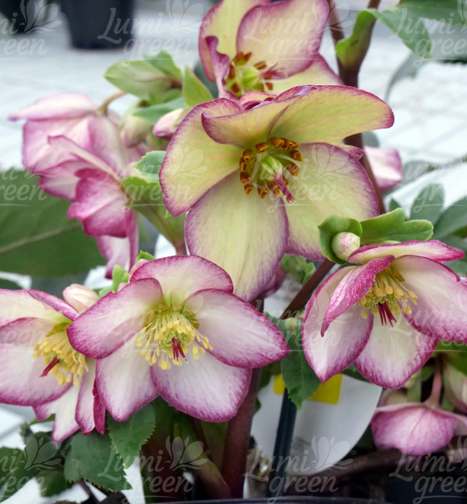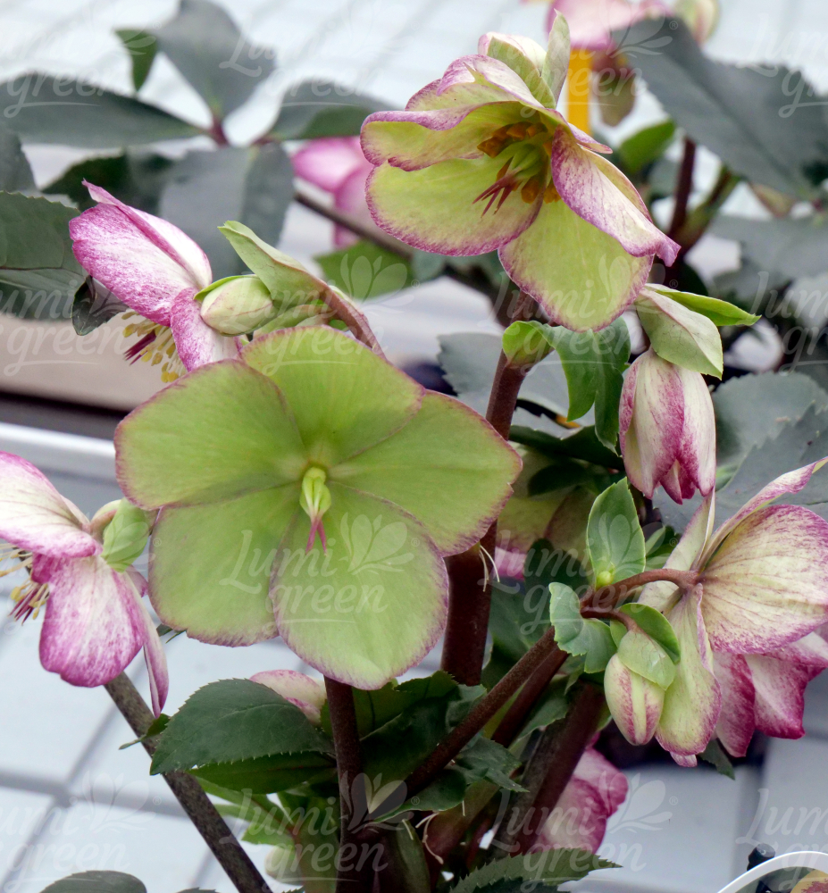 Atraktivní čemeřice s krémově zelenými květy a efektním růžovým okrajem.