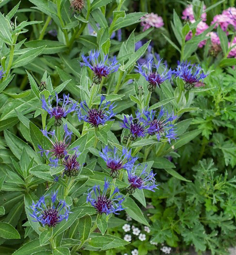 Charakteristika: Chrpa horská roste ve volné přírodě v horských a podhorských oblastech na loukách. Tato trvalka dorůstá výšky 50 cm, listy jsou podlouhlé, plstnaté, šedozelené barvy. Kvete od května do června rozcuchanými květy, lupeny jsou modré barvy, střed je fialový. Pokud květiny po odkvětu odstraníte, na podzim může opět rozkvést.