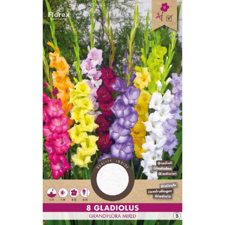 Balení obsahuje 8 ks hlíz mečíků, mix barev.