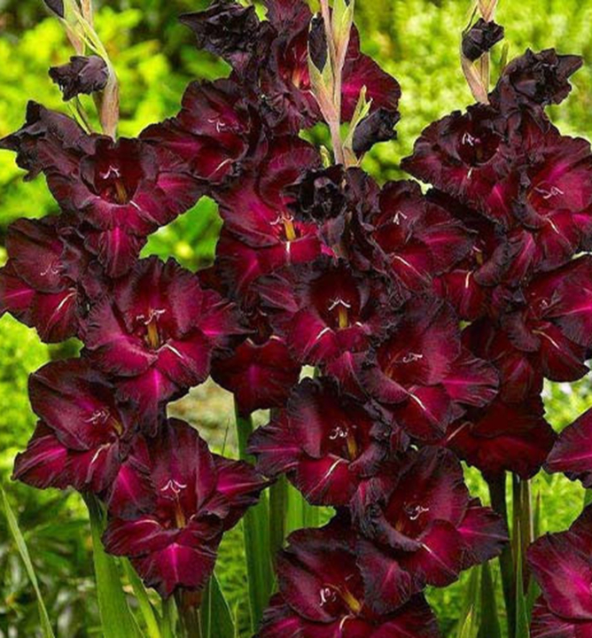 Charakteristika: Gladiol ´Black Star´ se pyšní se podmanivými, sytými, vínově červenými květy. Tato podmanivá odrůda zaručeně upoutá všechny oči ve vaší zahradě. Má vzpřímené zelené stonky, na kterých vyrůstají mečovité listy zelené barvy. Dorůstá výšky 100-120 cm. Vysazuje se jako solitér nebo ve skupinkách, mohou se pěstovat iv nádobách. Vytváří zajímavé barevné kombinace s jinými barvami různých kultivarů.