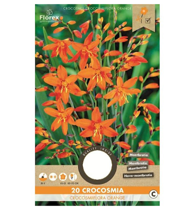 Charakteristika: Mimořádně efektní a exoticky vypadající Crocosmia - Montbrécie vytváří ozdobné chomáče vzpřímených listů ve tvaru meče a okouzlující oranžové trubkovité květy, které kvetou 5-8 týdnů od poloviny léta do poloviny podzimu. Rostlina je jako magnet pro motýli.