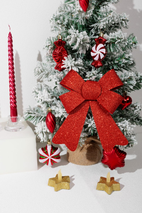 Charakteristika: Vánoční dekorace mašle ze třpytivého materiálu dotvoří čarokrásnou atmosféru Vánoc ve vašem domově. Je vhodná jako ozdoba na stromeček i jako dekorace do vánočních aranžmá a adventních věnců. Barva: červená. Rozměr: 13x21 cm.