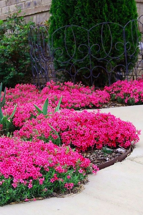 Nápadný polštářovitý červený flox přecházející do tmavě růžových odstínů.