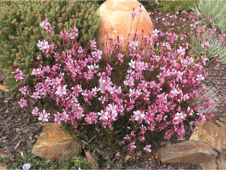 Kompaktně rostoucí gaura s krásnými jemně růžovými květy.