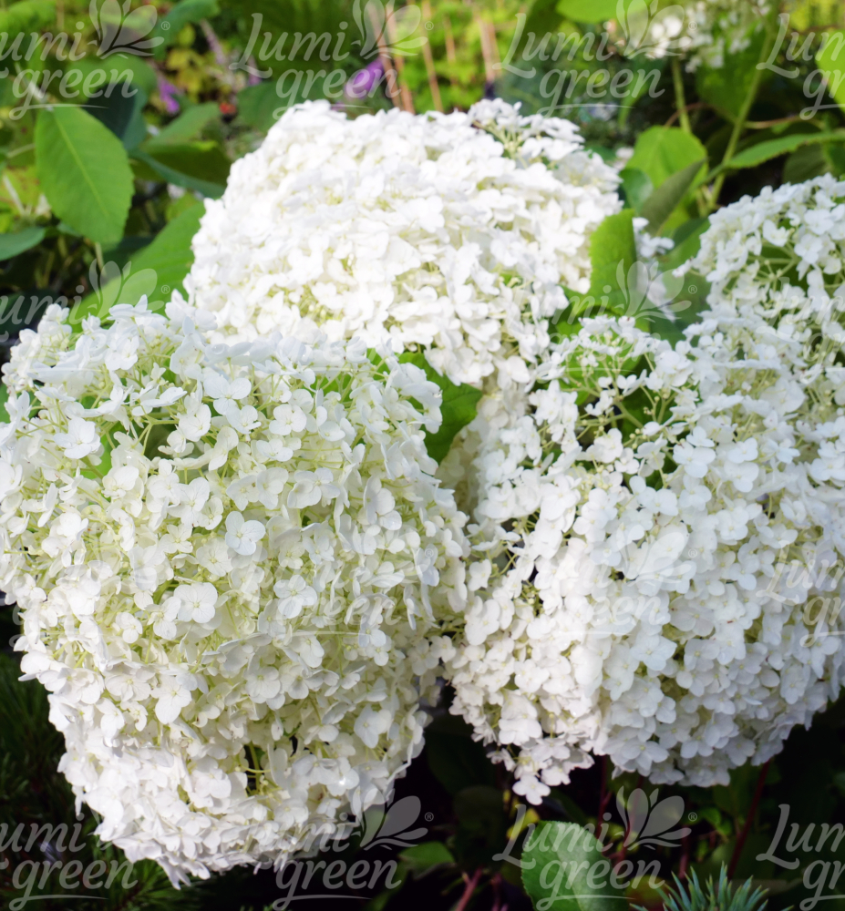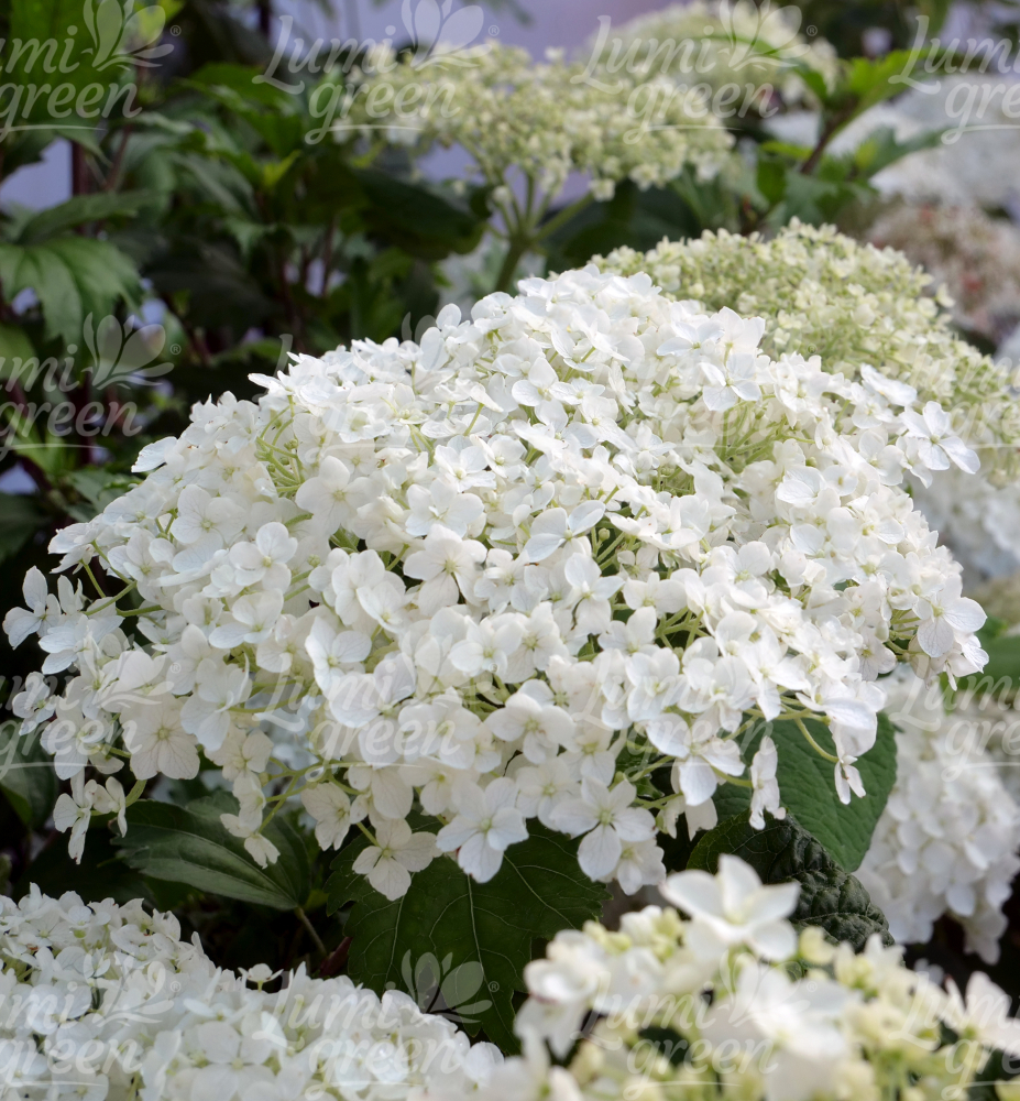 Okouzlující mrazuvzdorná hortenzie s velkými bílými květenstvími.