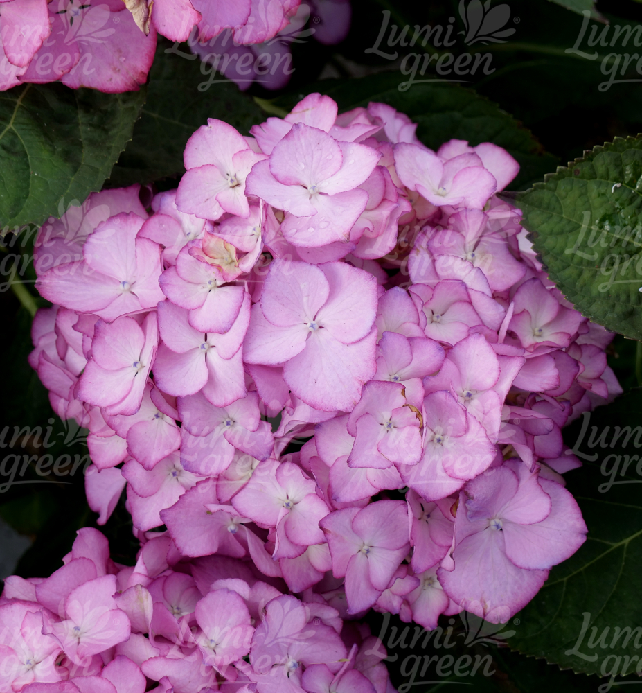 Nová kompaktní odrůda hortenzie s jemně zbarvenými růžovými květy.