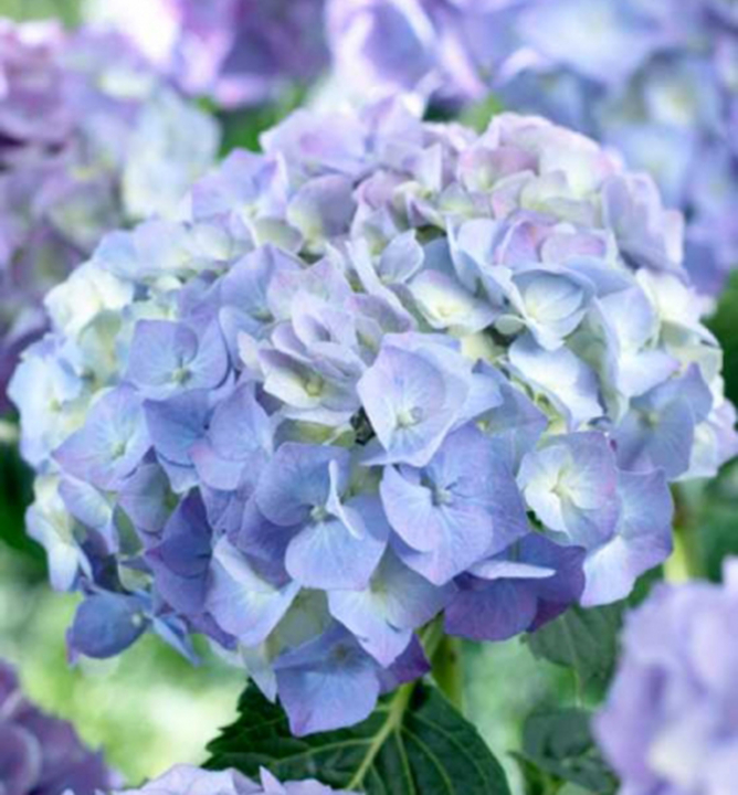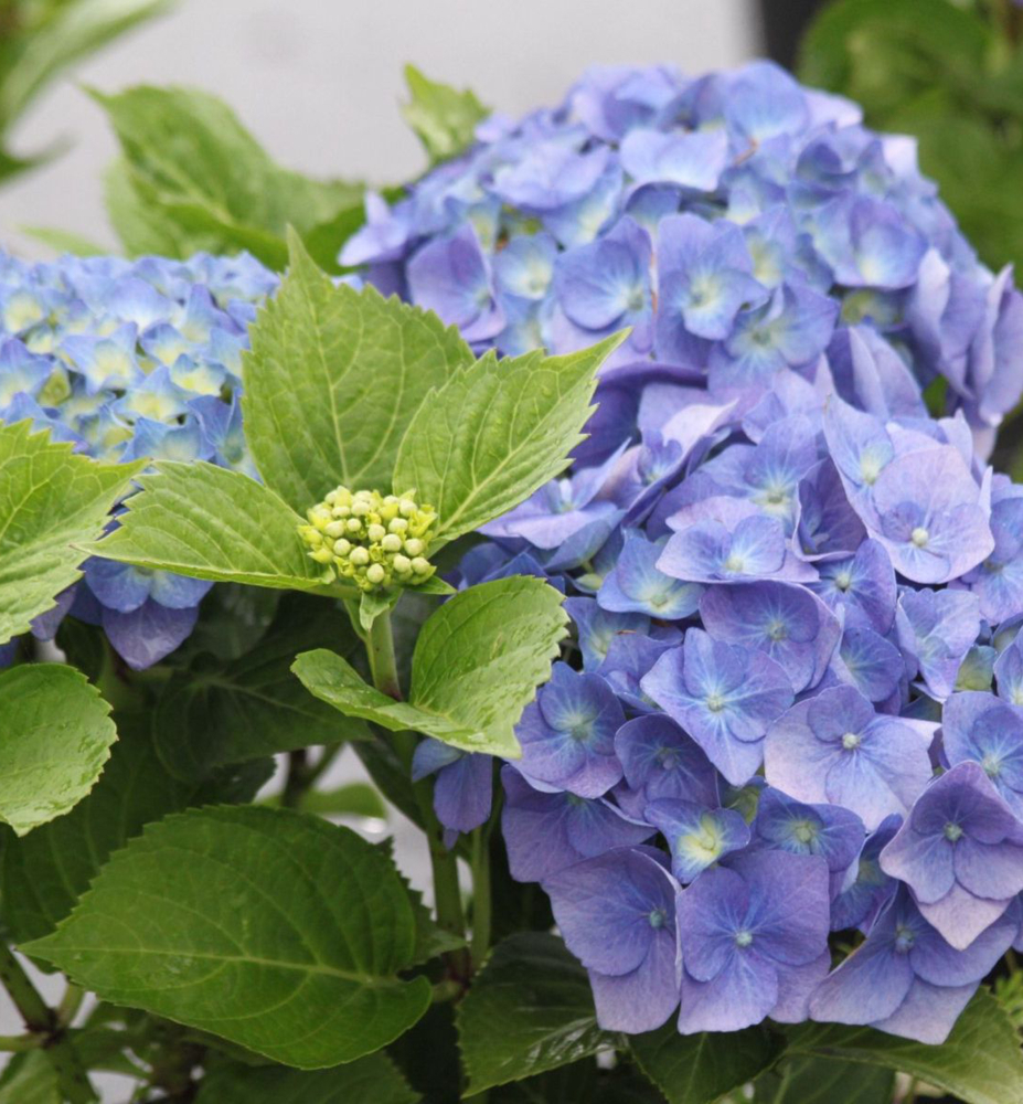 Nová, bohatě kvetoucí hortenzie s kulovitými modrými květy.