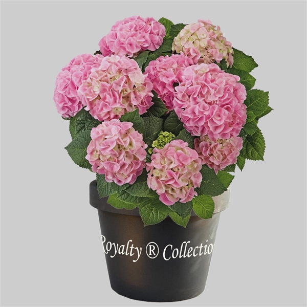 Elegantní velkolistá hortenzie s velkými růžovými květy.