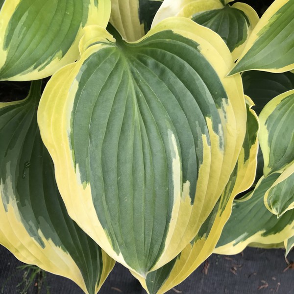 Charakteristika: Výjimečný kultivar ´BROAD BAND´ se vyznačuje zaoblenými, mírně zvlněnými listy. Jsou tmavě zelené barvy, zvýrazněné širokými a nepravidelnými okraji, které jsou zpočátku zářivé limetkovožluté, později až krémové. Během léta se nad kompaktním, 40-50 cm vysokým trsem rozvíjejí světle fialové zvonkové květy. Vzájemnou kombinací vícebarevných odrůd přinesete do stinných záhonů pestrost a působivou strukturu.