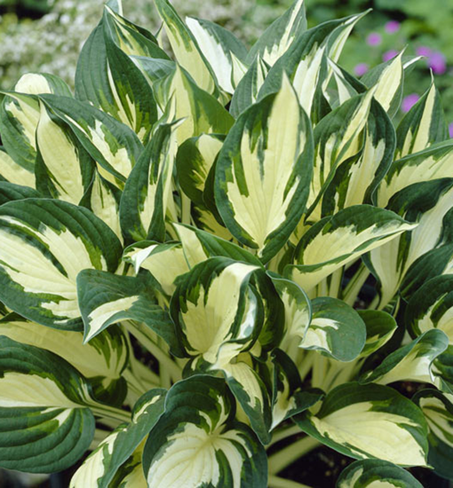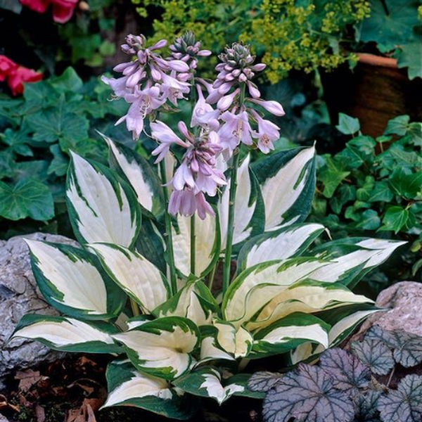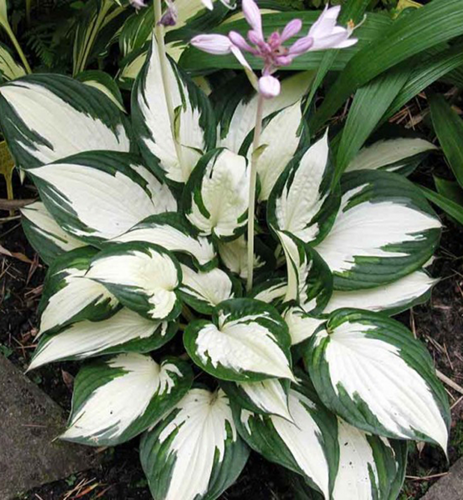 Charakteristika: Hosta ´FIRE AND ICE´ se vyznačuje kontrastně zbarvenými srdčitými listy, které jsou uprostřed bílé až krémové a na okrajích se zbarvují do tmavě zelené barvy. Během léta kvete levandulově růžovými květy na vysokém stonku. Hosty jsou vynikající trvalky do stínomilných záhonů, kde vytvářejí pestré struktury díky různobarevným listům.