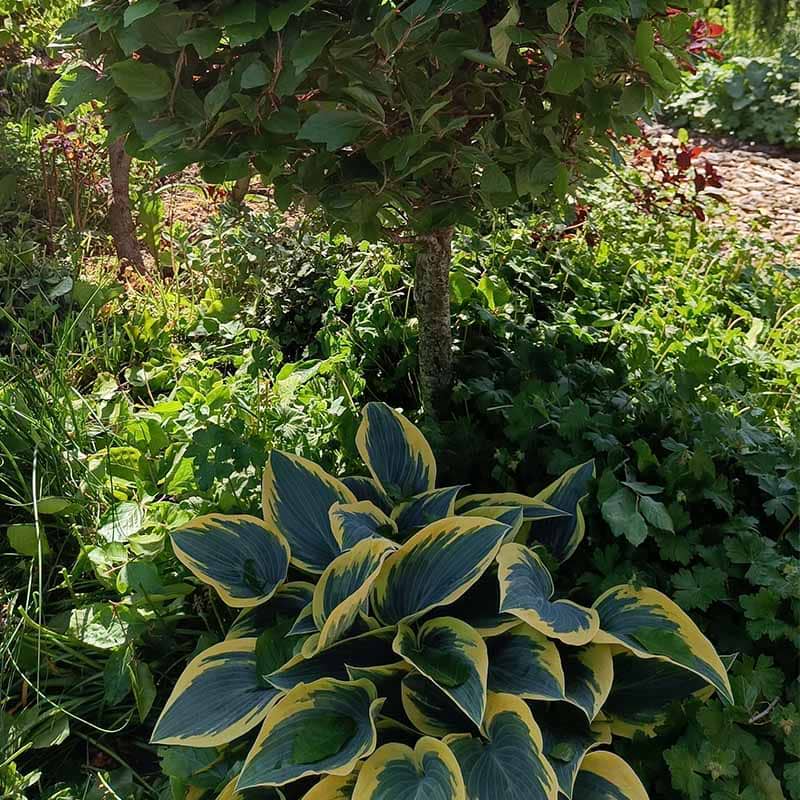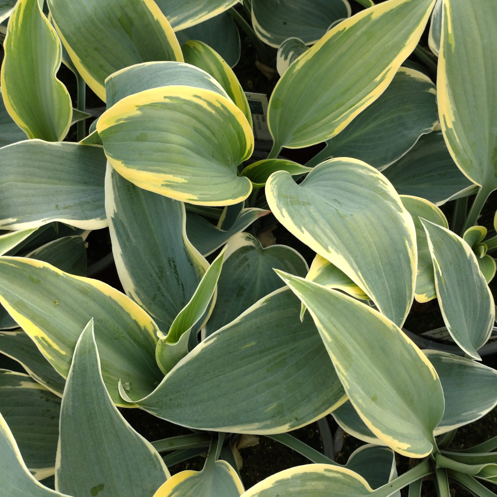 Zajímavá modrozelená hosta s kontrastním krémově bílým lemem.