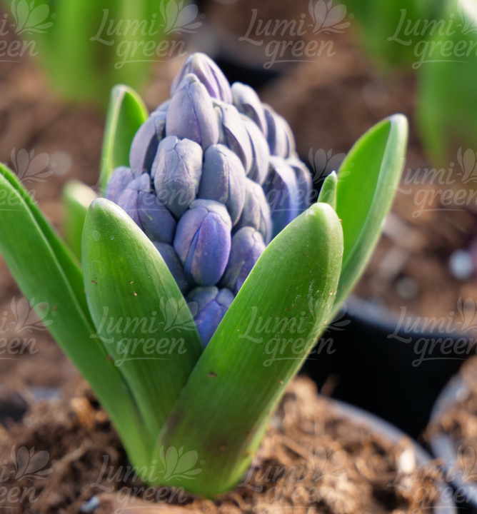 Cibule hyacintu s hvězdicovitými květy světle fialové barvy s příjemnou vůní.