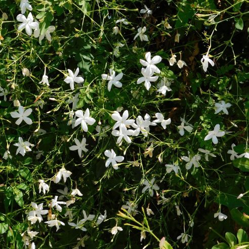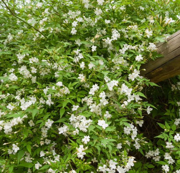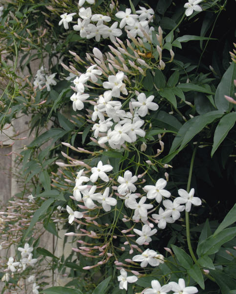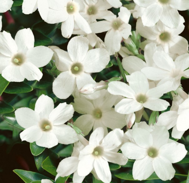 Atraktivní pnoucí rostlina s bílými květy s klasickou jasmínovou vůní.