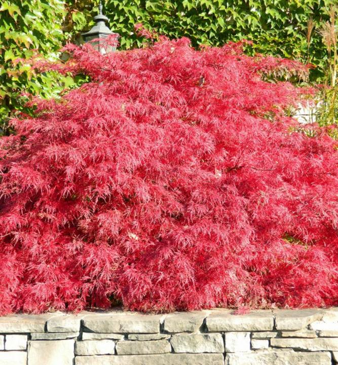 Charakteristika: Javor dlanitolistý 'CRIMSON QUEEN' je velmi oblíbený nižší strom s kompaktní korunou a tvarem připomíná hřib. Vyznačuje se vysokou odolností vůči popálení listů sluncem. Úzce střižené listy mají vínově červenou barvu, která se na podzim mění na zářivou červeno oranžovou.