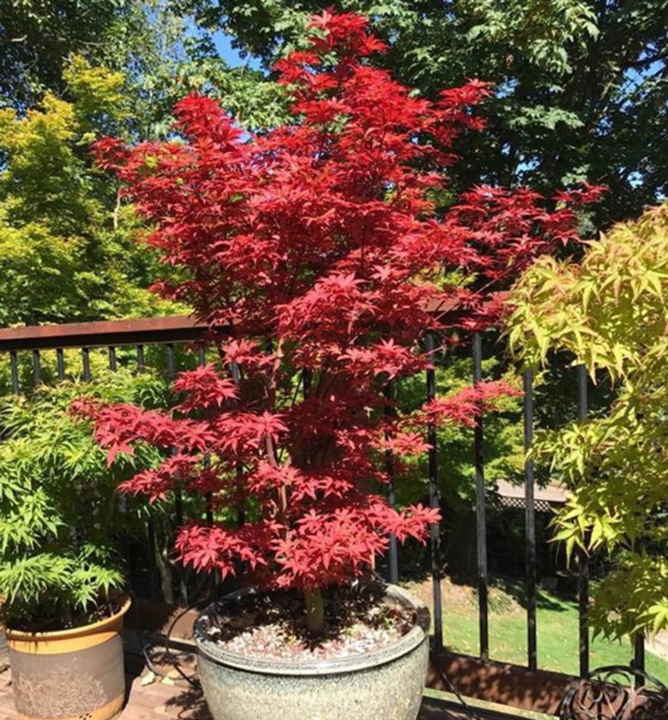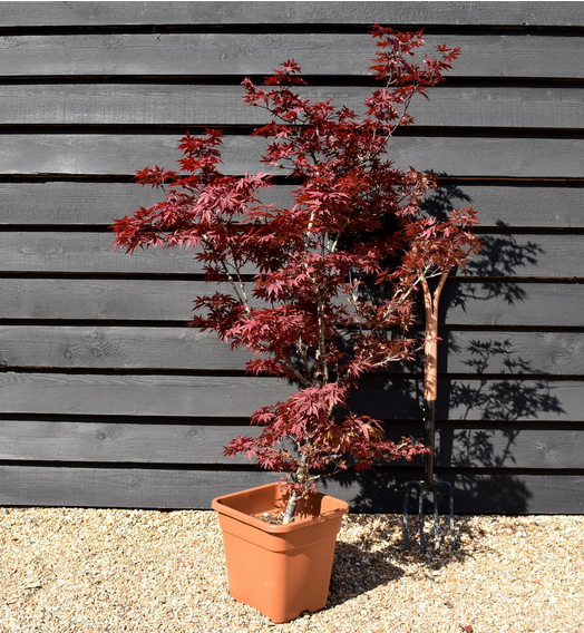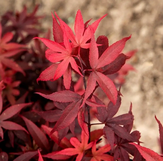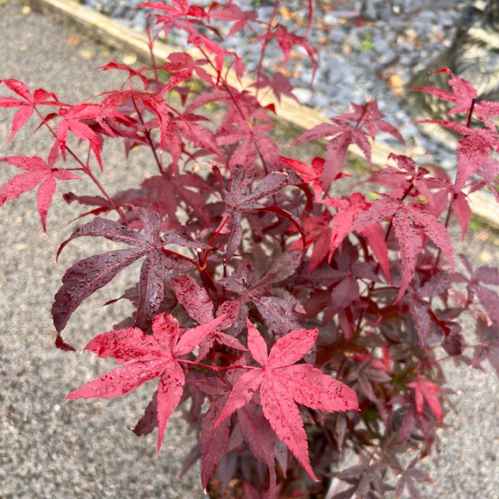 Nižší javor s úzkým vzpřímeným vzrůstem a s výrazně červenými vykrajovanými listy.