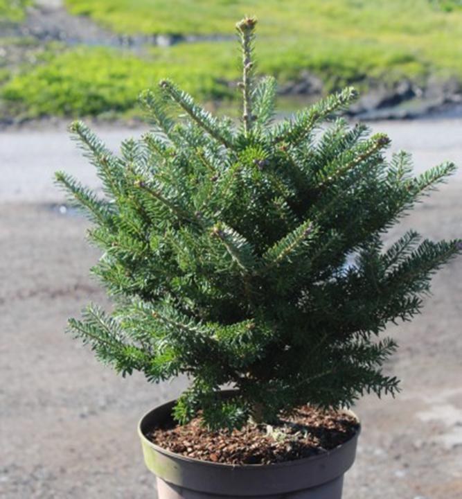 Jedna z nejkrásnějších okrasných jedlí s atraktivními fialově modrými šiškami.