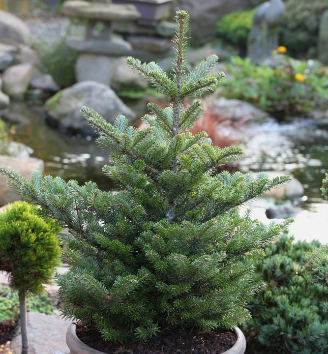 Jedna z nejkrásnějších okrasných jedlí s atraktivními fialově modrými šiškami.