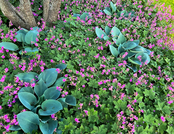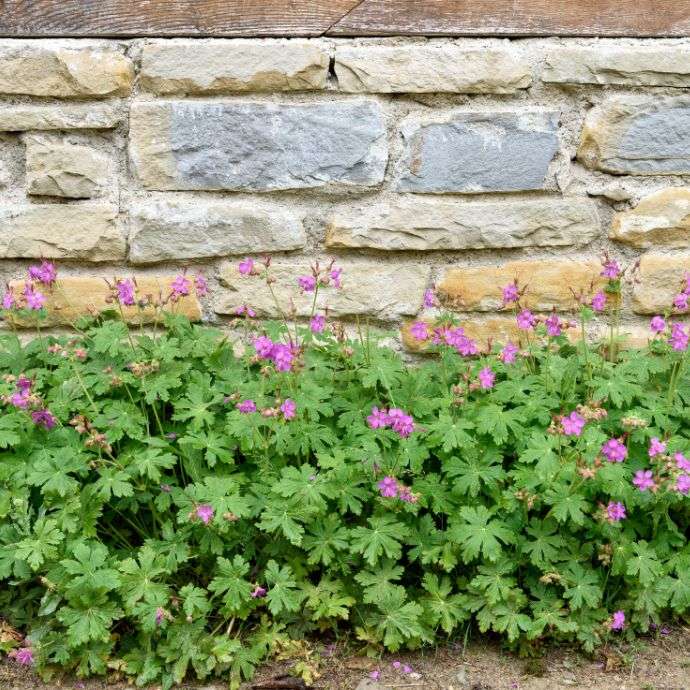 Nenáročná půdopokryvná trvalka s růžovo fialovými květy, vhodná do přírodních výsadeb.