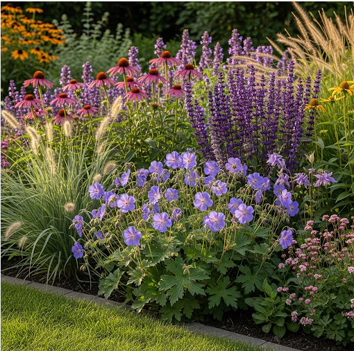 Modrý dlouho kvetoucí kobercovitý kakost, vhodný i do květináče.