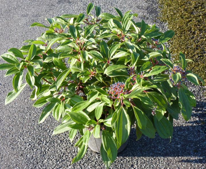 Skvostná stálezelených nízká kalina s lesklými listy a dekorativními plody.
