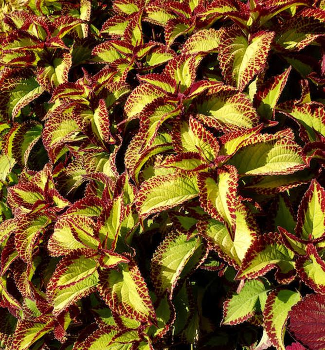 Oblíbená africká kopřiva s limetkově zelenými listy a výrazným vínově červeným okrajem.