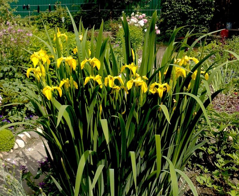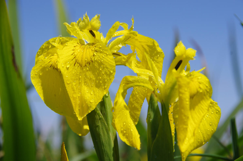 Atraktivní vlhkomilných kosatec se zářivými žlutými květy, vhodný na okraje jezírek.