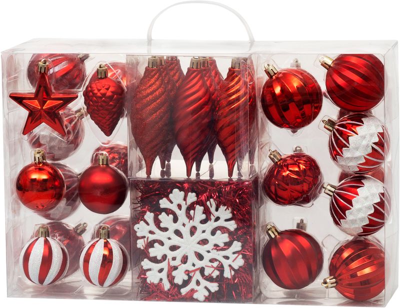 Charakteristika: Tato kolekce obsahuje 39 kusů červených koulí a dekorací v různých tvarech a povrchových úpravách, které váš vánoční stromek rozzáří a dodají mu tradiční sváteční šarm. Mix lesklých, matných a třpytivých dekorací vytvoří dokonale harmonický vzhled. Sada je ideální pro vytvoření kompletní výzdoby stromku, přičemž ozdoby jsou vyrobeny z kvalitního a lehkého materiálu, který je bezpečný a praktický na zavěšení.