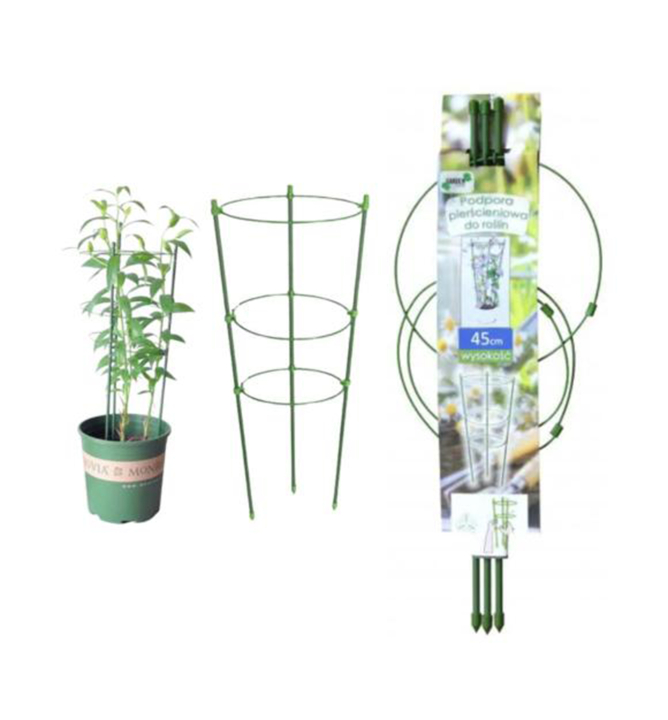 Charakteristika: Kruhovú oporu lze použít k rostlinám a vytvořit tak podpěru kolem celé rostliny. Opora je vyrobena z odolné oceli a je potažena zeleným plastem. Je odolná vůči povětrnostním podmínkám a je možné ji použít i několik let.