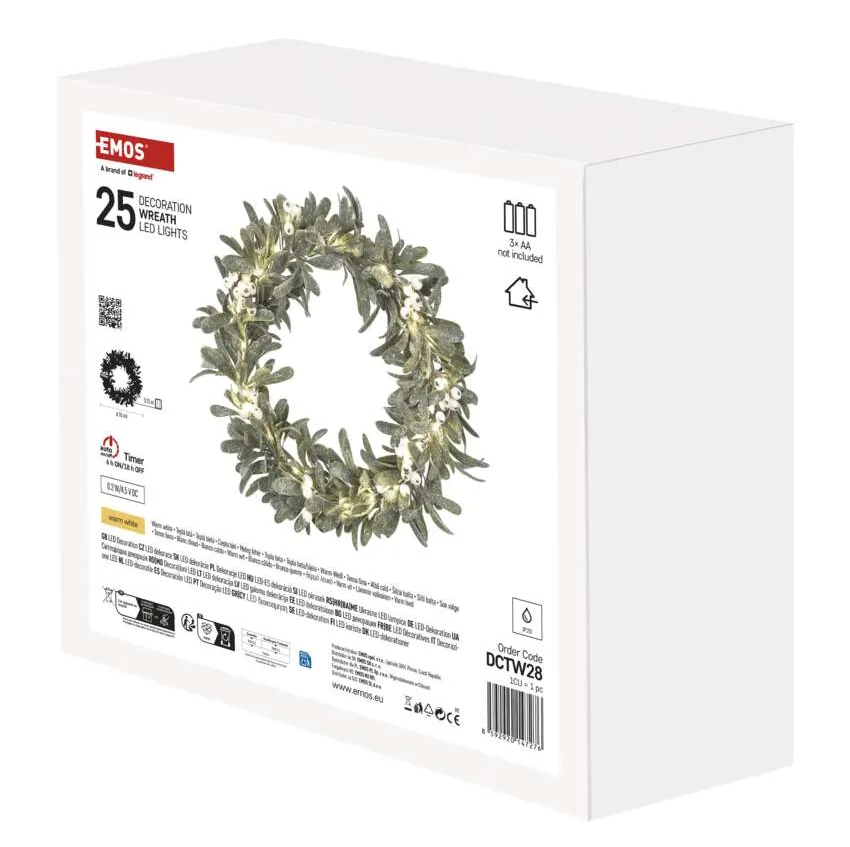 LED Dekorace věnec z jmelí, 3x AA, teplá bílá, časovač