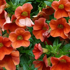 Minipetunie s výraznými oranžovými květy a polopřevislým habitusem.