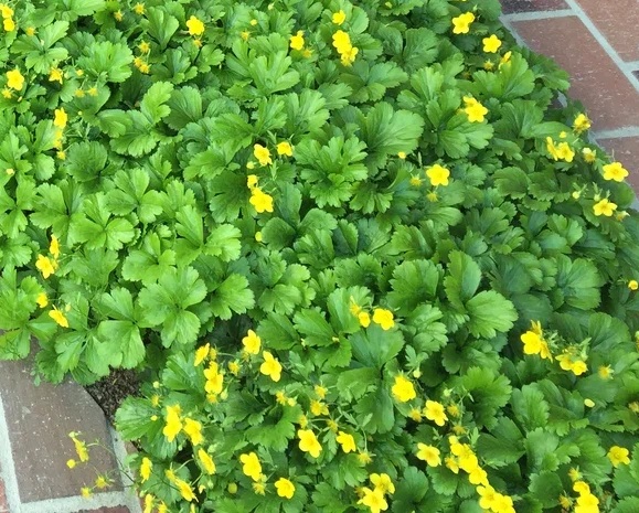 Stínomilná půdopokryvná trvalka se zářivě žlutými květy.