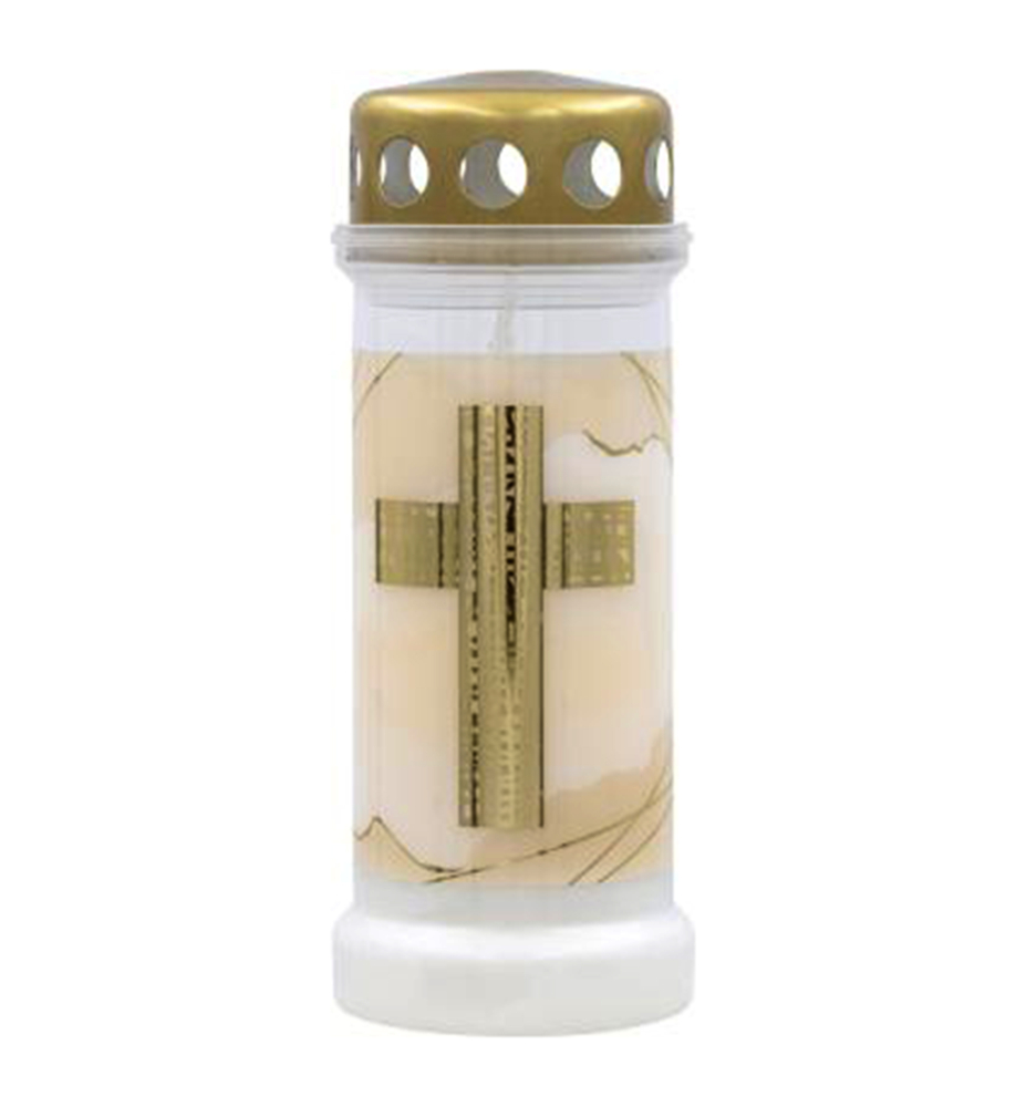 Charakteristika: Parafínová svíčka Bolsius je kvalitní náplň do kahance s motivem kříže, vhodná na pietní místa, hřbitovy nebo osobní vzpomínku. Motiv kříže symbolizuje naději, víru a úctu. Náplň je vyrobena z kvalitního rafinovaného parafínu, který zajišťuje čisté a stabilní hoření. Plastové pouzdro se zlatým odvětrávaným krytem chrání plamen před větrem a deštěm. Doba hoření – 70 hodin. Rozměry: výška 170 mm × průměr 65 mm.
