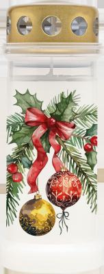 Charakteristika: Kahanec Bolsius Gravelight s dekorem vánoční stuhy je ideálním doplňkem pro vytvoření klidné a sváteční atmosféry během zimního období. Díky elegantnímu designu se sezónním motivem se hodí na hřbitov i jako dekorace do exteriéru. Náplň je vyrobena z kvalitního rafinovaného parafínu, který zajišťuje čisté a stabilní hoření. Plastové pouzdro se zlatým odvětrávaným krytem chrání plamen před větrem a deštěm. Doba hoření – 70 hodin. Rozměry: výška 173 mm × průměr 67 mm.