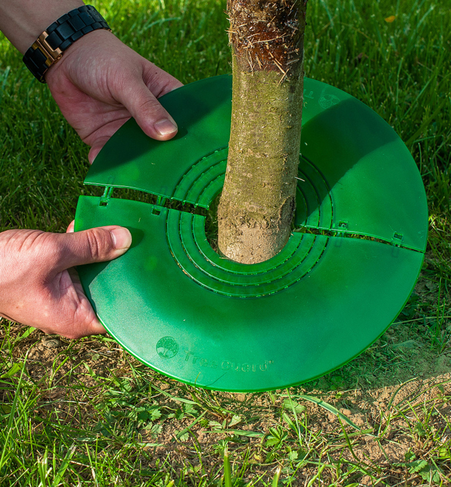 Charakteristika: Ochrana stromů TreeGuard® je plastový chránič ve tvaru disku pro ochranu stromů, keřů a rostlin před poškozením při sečení. Stačí přizpůsobit průměru vašeho stromu a jednoduše spojit obě poloviny k sobě. zabraňuje zatravňování v okolí stromu, čímž se zjednodušuje sečení, zaniká potřeba vytrhávat trávu ručně. Přizpůsobitelný průměr, max. 115 mm. Návod k použití: Vyčistěte okolí chráněného předmětu od trávy a jiných nečistot. Zahlaďte okolí chráněného předmětu, na které umístíte TreeGuard. Změřte průměr chráněného předmětu a podle potřeby přizpůsobte vnitřní průměr TreeGuardu vylomením částí podél perforace na obou polovinách. Přiložte obě poloviny k sobě, tak aby obepínaly chráněný předmět a mírným přitlačením je spojte pomocí rychle upínacích zámků k sobě. Ujistěte se, že obě poloviny jsou k sobě pevně spojeny a obepínají chráněný předmět tak, aby nedošlo k jeho poškození.