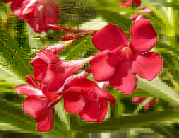 Charakteristika: Oleandr obyčejný pochází ze Středomoří a subtropických oblastí východní Asie a Japonska. Známe ho z dovolených v přímořských oblastech a můžeme jej pěstovat také u nás v nádobách a v květináčích. Je to stálezelený a bohatě kvetoucí keř dorůstající do výšky asi 2,5 m a šířky 3 m, v květináčích je vysoký 0,5-2 m. Intenzivní a jasné purpurově červené květy tohoto kultivaru kvetou dlouho během celého léta.