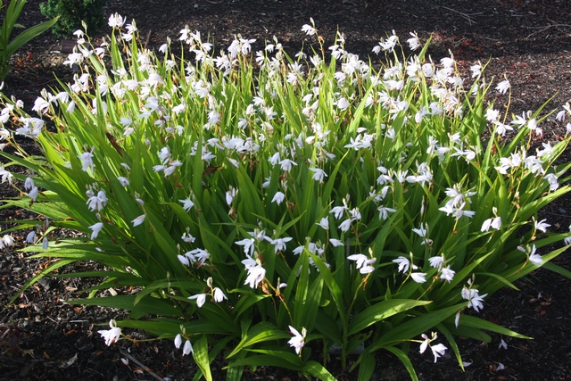 Půvabná "zahradní orchidej" s nádhernými bílými květy.