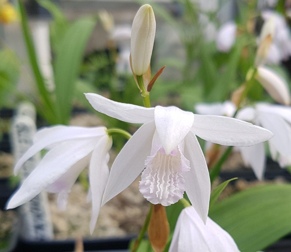 Charakteristika: Orchidej vzpřímená ´ALBA VARIEGATA´ pochází z Číny. Tento kultivar zahradní orchideje zaujme svou nevinnou sněhobílou barvou. Na vzpřímeném stonku vyrůstá 6 -12 květů, tvořených pěti úzkými okvětními lístky s výraznějším středovým kalichem. Kvetou v červnu 2 - 4 týdny. Světle zelené panašované listy jsou jemně zvrásněné. Dorůstá výšky 40 - 50 cm.
