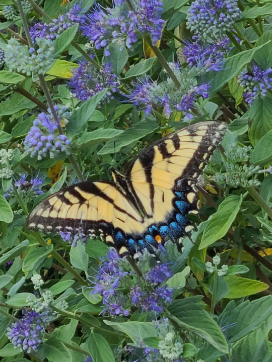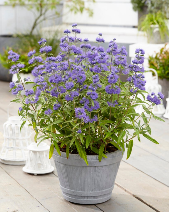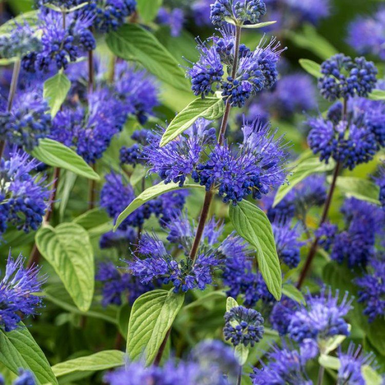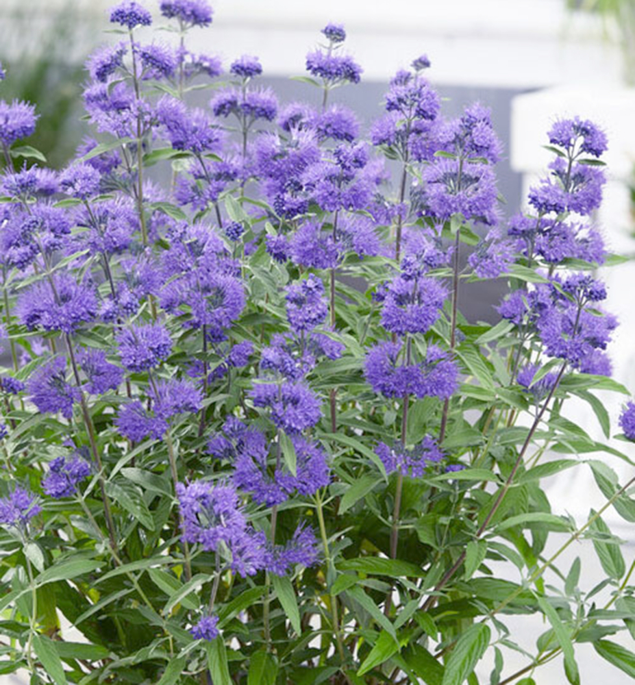 Středně vysoký okrasný keř s medonosnými, intenzivně modrofialovými květy.