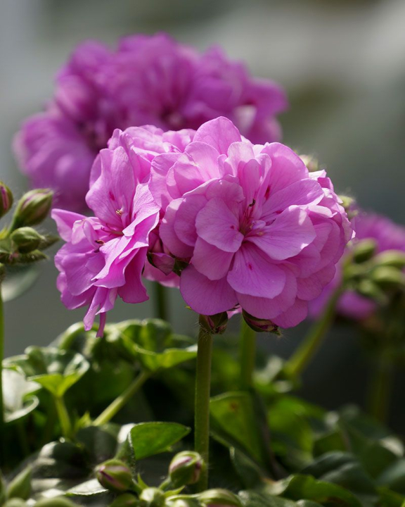 Pěstování: Pelargonie pěstujeme na slunném místě, aby bohatě kvetly celé léto. Při výsadbě používáme substrát na balkonové rostliny. V případě, že rostliny vysazujeme na místo, kde jsou vystaveny i přirozeným srážkám, je dobré, když na dno květináče nasypeme tenkou vrstvu perlitu nebo keramzitu, abychom zabránili případnému promočení substrátu. Muškáty vyžadují pravidelnou, ale přiměřenou zálivku a hnojení minimálně jednou za týden hnojivem na balkonové rostliny. Jsou citlivé na promočení substrátu, proto je zaléváme, až když je substrát suchý. Odkvetlé květiny odstraňujeme. Přezimováváme je v chladné místnosti.