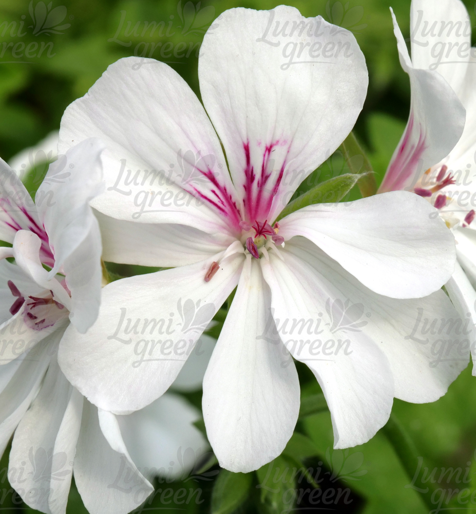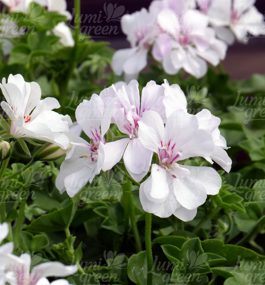 Charakteristika: Jednoduchá pelargónie ´HAPPY FACE® WHITE´ kvete bílými květy s jemnou růžovou kresbou na lupenech. Listy jsou tmavě zelené zoubkování až srdcovitého tvaru. Pelargónie 'HAPPY FACE' se vyznačují časným kvetením a středním růstem.