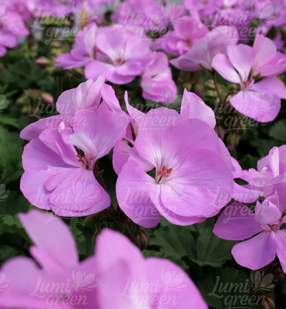 Velmi brzy kvetoucí kompaktní pelargonie s levandulovými květy.