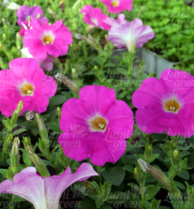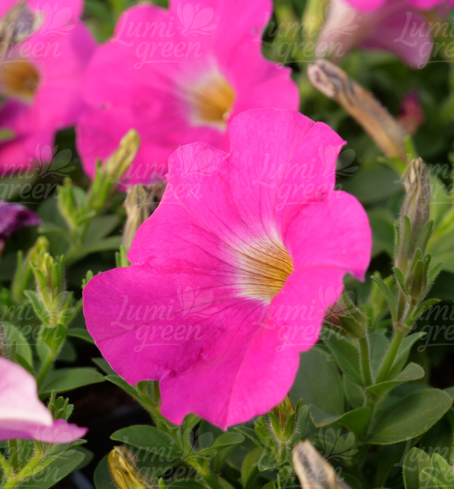 Sytě růžová polopřevislá petunie s časným a bohatým kvetením.