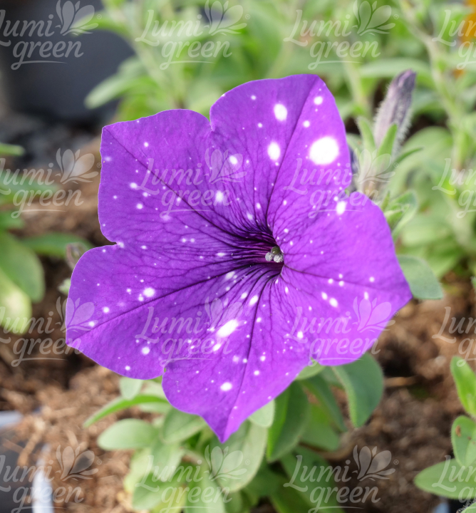Charakteristika: Tato nepřehlédnutelná odrůda ´SPLASHDANCE® BOLERO BLUE´ připomíná velkými květy noční oblohu posetou hvězdami. Jejich tmavě fialová barva je dozdobena kontrastními bílými tečkami, které mají nepravidelný tvar. Každá květina je díky tomuto zbarvení unikátní. Petunie je vhodná pro výsadbu do závěsných květináčů, kde vytváří efektní mírné převisy.