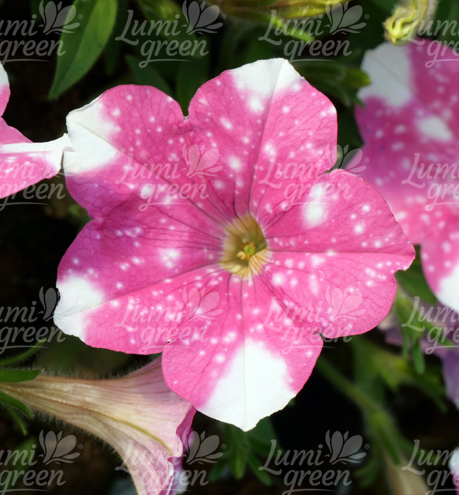 Charakteristika: Odrůda ´SPLASHDANCE® RUMBA ROSE´ vytváří na polopřevislých stoncích velké květy výrazné magentově růžové barvy. Květy doplňují nepravidelné dekorativní tečky bílé barvy. Každá květina je díky tomuto zbarvení unikátní. Petunie je vhodná pro výsadbu do závěsných květináčů, kde vytváří efektní mírné převisy.