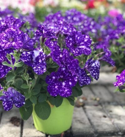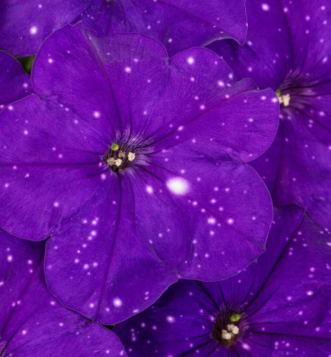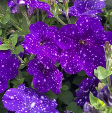 Unikátní petunie s tmavě fialovými květy, připomínajícími noční oblohu.